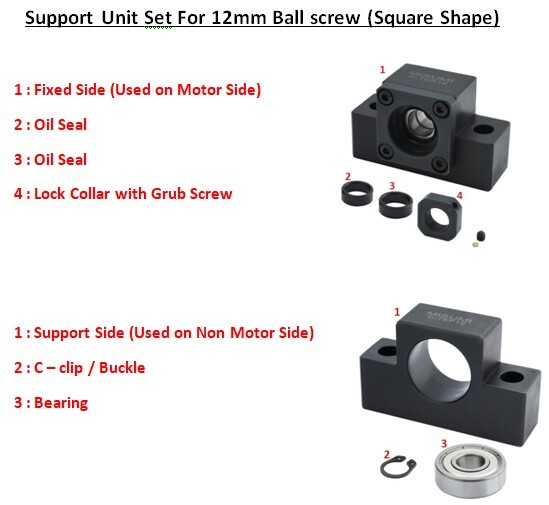 Support unit set for 8mm ballscrew consists of two parts as mentioned below. Support set is used for mounting the ballscrews. See detailed image given below.