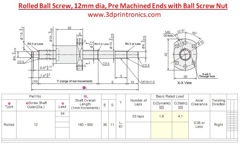 Rolled Ball Screw 12mm (With Pre Machined Ends + Ball Screw Nut)